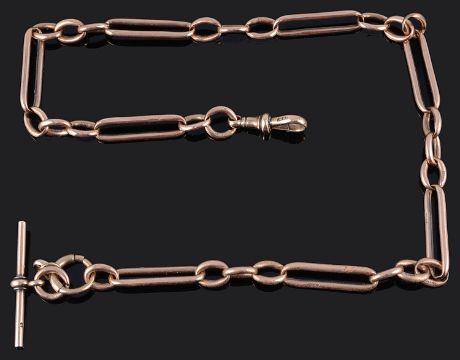 A heavy fancy link 9ct rose gold watch Albert chain