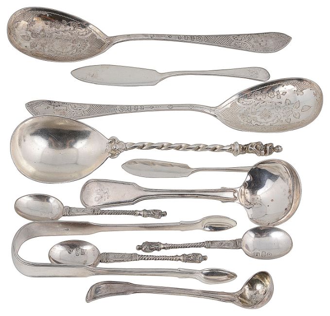 A collection of assorted mostly 19th century and later silver