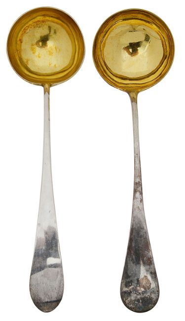of plain design, one with pointed terminal, the other rounded, both with gilded bowls, (2)