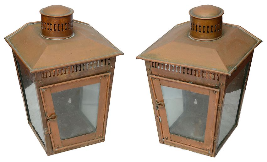 A pair of copper candle wall lanterns