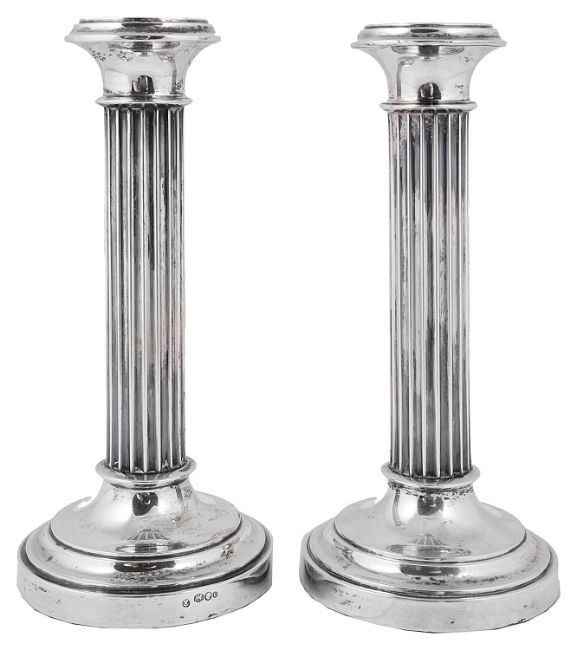 A pair of early 20th century Dutch .833 silver fluted column candlesticks