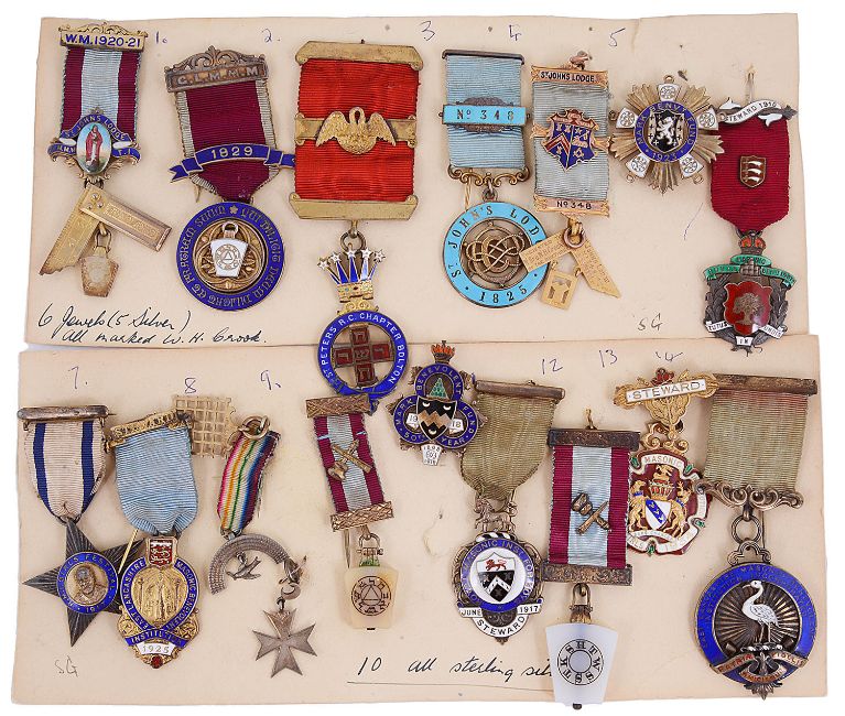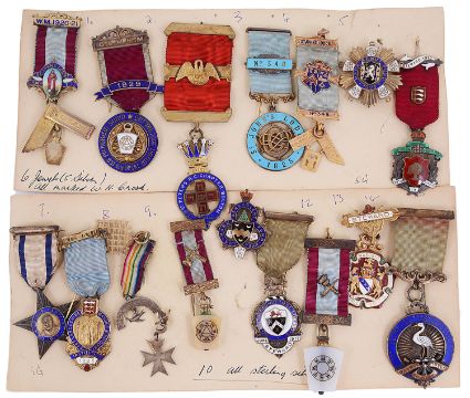 Masonic Institute for Boys June 1917 Stewards medal, Mark Benevolent Fund 1923 badge, East Lancashire Masonic Institution Stewards medal, 1925, East Lancashire Masonic Benevolent Institution Incorporated medal, The Royal Masonic Institution for Girls, Steward medal 1934, etc. (16)