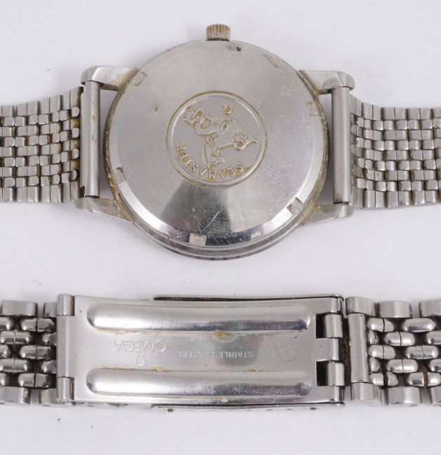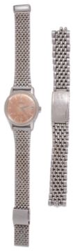 24 jewels movement numbered 23028173, on a associated brick link stainless steel bracelet, together with original stainless steel bracelet with fold over clasp, engraved J.Pye.