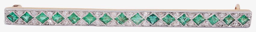 An attractive Edwardian Emerald and diamond set bar brooch
