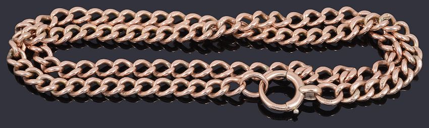 A 9ct rose gold curb link watch Albert chain