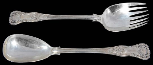 A matched pair of Irish William IV/Victorian silver Kings pattern salad servers