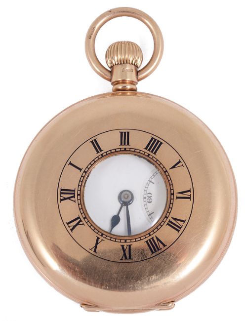 case marked for Birmingham 1928, with black enamel chapter ring to front,the circular white enamel dial with Roman numerals, minute track and subsidiary seconds dial signed J.W. Benson London, the 17 jewels movement also signed, in a fitted Garrard and Co. case