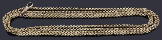 the double link chain with end suspension clip, yellow metal tests for gold