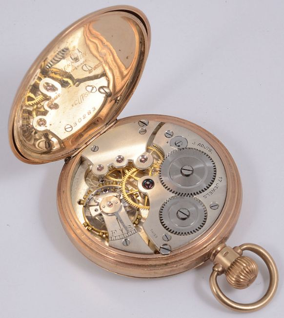 the white enamel dial with Roman numerals, minute track and subsidiary seconds dial, 17 jewels movement