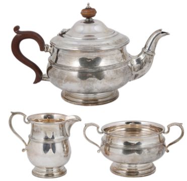 A George V silver three piece tea service