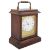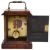 scrollwork gilt mask and 8 day brass movement, plain case on plinth base fitted with gilt brass carrying handle