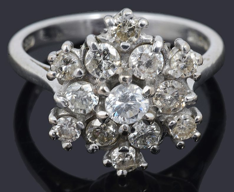 A contemporary 18ct white gold diamond set 'snowflake' cluster ring