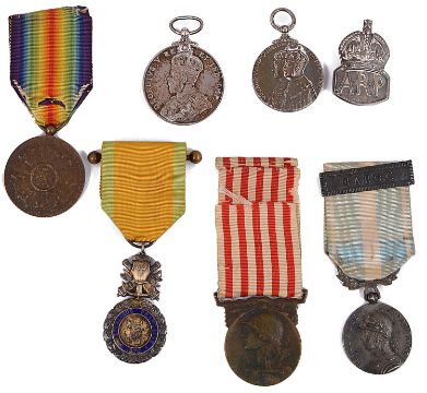 to include a medal group awarded to T-424 AMT. Sjt E S. Nickolds A.O.C. formed of War and Victory medals, 1914-15 star with bar, Army Long service and good conduct medal and French 1914-1918 Croix de Guerre with star to ribbon together with a 1914-1916 Croix de Guerre with two stars to ribbon in fitted case, Medaille Coloniale medal with Maroc bar, a French 1914-1918 Grande Guerre medal, a French 1870 Valeur et Discipline medal, A London fire Brigade 1911 coronation medal etc. (qty)