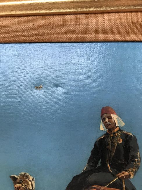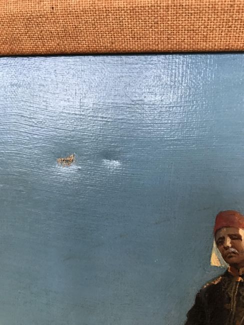 Condition: Some retouching to sky. Please note since recent transportation there has been a small tear to the upper part of the canvas. However this is not a hole that goes right through the canvas.