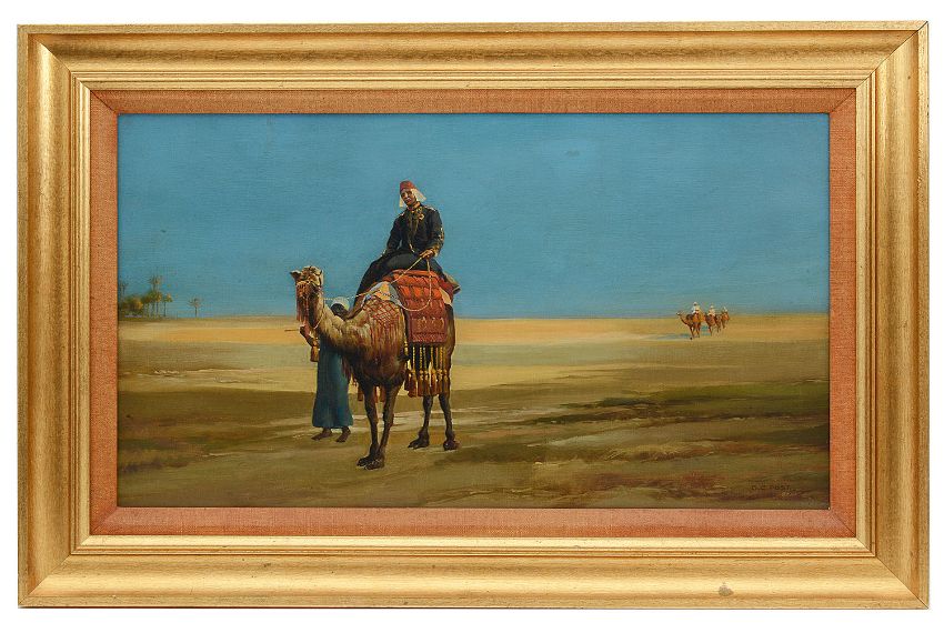 'A Caravan Crossing the desert', oil on canvas, signed and dated 1905