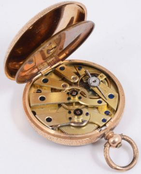 A ladies 14k gold Swiss open faced pocket watch