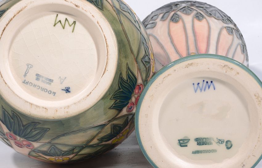 Two modern Moorcroft pottery 'Cluny' pattern vases designed Sally Tuffin