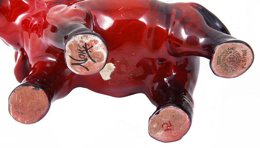 Two Royal Doulton red flambé elephants