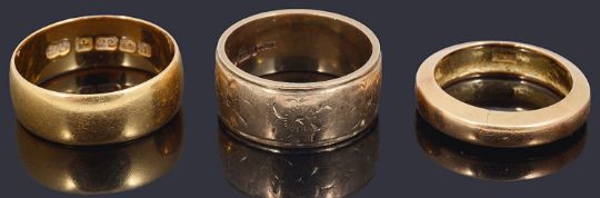 22ct approx. 5.59g., size O, 18ct approx. 6g., 9ct approx. 6.2g.