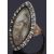 the ring of marquis shape and with central sepia painting of a young girl with doves holding a wreath, set within a single row paste border, engraved detail to mount shoulders, metal tests part gold and silver, associated ring box