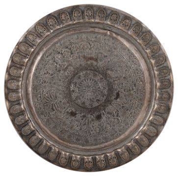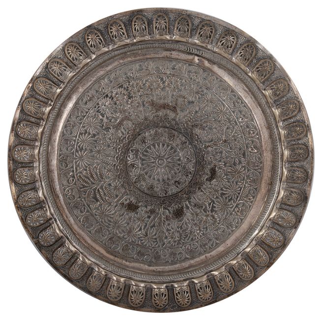 the centre embossed with various animals and palm tree with a fish border, the raised lobed rim with a pierced palm tree design