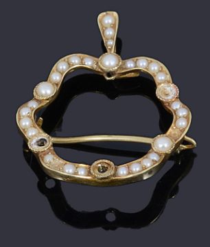 Condition: Overall good, pendant brooch some half pearls absent, pearls untested