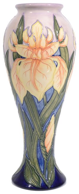 A modern Moorcroft pottery 'Windrush (Yellow Iris)' pattern vase designed by Debbie Hancock