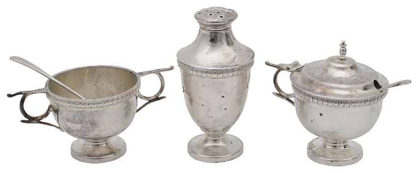 A George V silver three piece cruet set