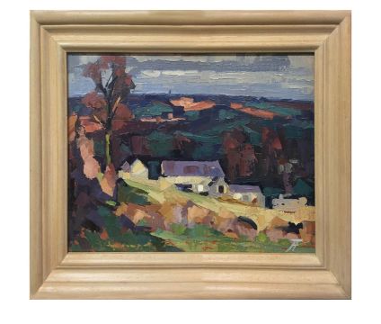 'Distant Summer View', oil on canvas board, initialled J F bottom right, framed
