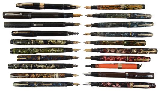 makers include Mentmore, Parker, Conway Stewart, Sheaffer, Waterman, Wyvern and Burnham, together with a Must de Cartier ball-point pen, the majority have 14k gold nibs. (qty)