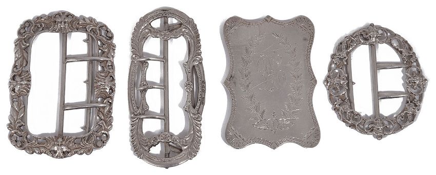 Four Victorian and later silver buckles