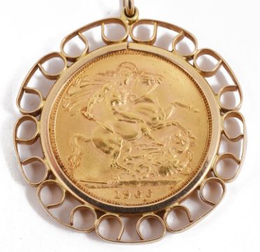 the sovereign dated 1966 in removable mount, suspended from fine chain (tests for gold)