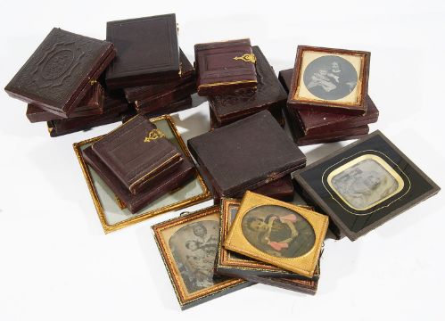 comprising six daguerreotype portraits of ladies and gentleman in fitted cases, the rest ambrotype portraits mostly of children and family groups either in fitted cases or original frames, (26)