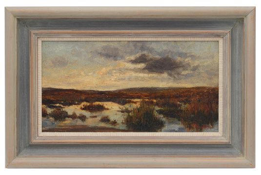 'Evening on the moors, Robin Hood's Bay', oil on board, framed, bears hand written label verso
