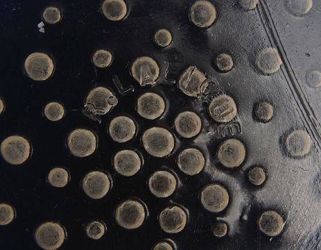 circular bowl moulded in relief with spiralling fish, moulded signature R. Lalique