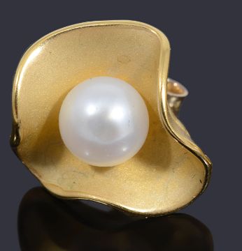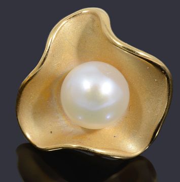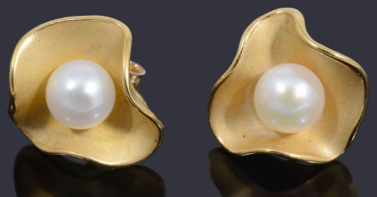 a single cultured button pearl peg set to a scalloped floral surround with post and butterfly fittings