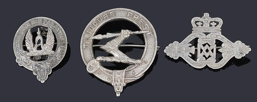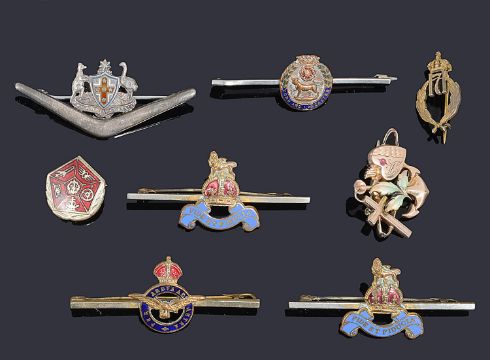 A collection of regimental badges,