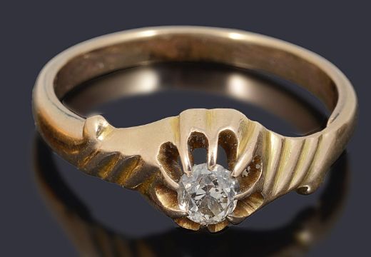 the old cut diamond in high claw yellow gold mount, tests for gold, together with a 22ct gold wedding band (2)