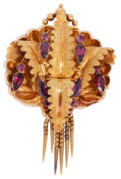 A Victorian Gothic-style amethyst spray and tassel brooch, c.1860