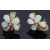 A pair of gold opal and diamond floral earrings and a similar opal and diamond pendant,