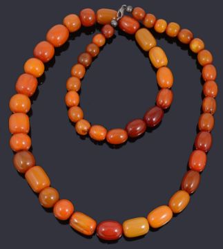 A single row graduated amber bead necklace,