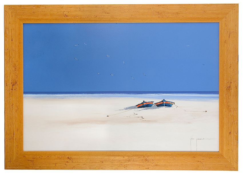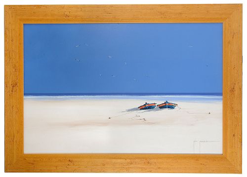 'Deserted beach', oil on canvas, signed bottom right, framed