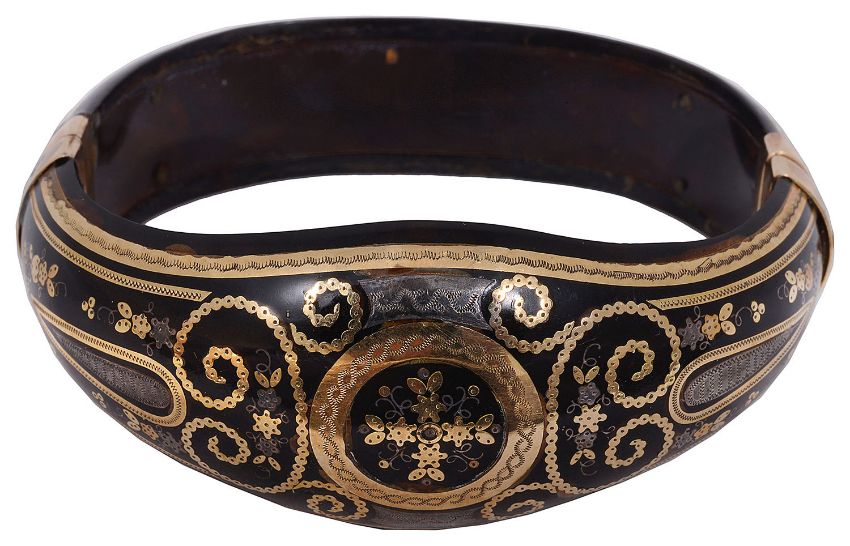 to include a Victorian gold and silver pique tortoiseshell inlay bangle,