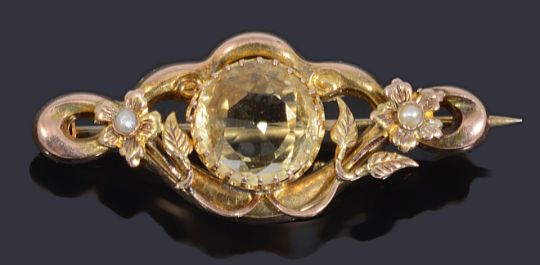 Condition: Safety chain deficient on the opal brooch, opal has a line running through it possibly a inclusion or crack but not surface reaching, citrine brooch: pin not gold