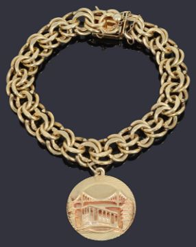 with circular gold San Francisco' pendant charm and concealed box clasp, marked 14k