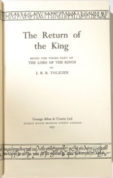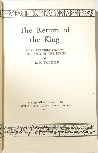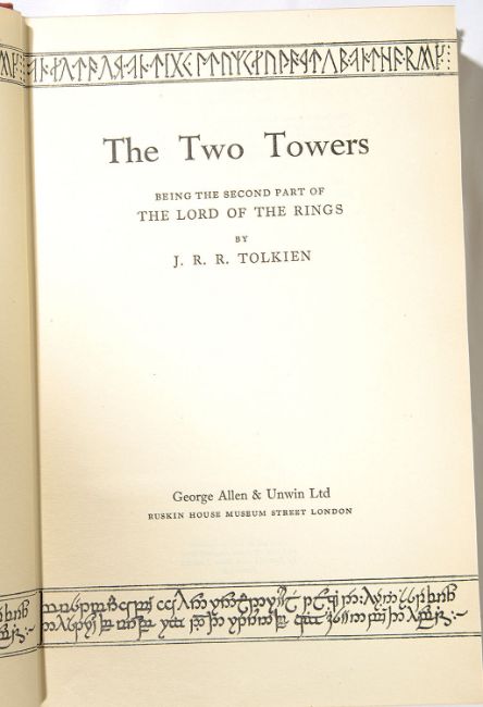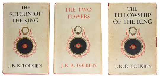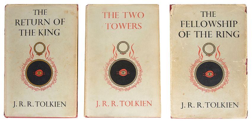1955, London, Allen & Unwin, The Fellowship of the Ring., first edition fourth impression., The Two Towers, first edition second impression., The Return of the King, first edition, 8vo. original red cloth, dust jackets, (3)