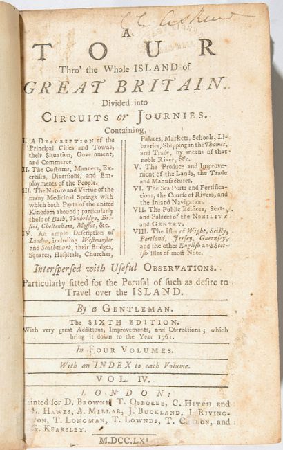 Defoe, Daniel., A Tour Thro' the Whole Island of Great Britain, Divided into Circuits or Journies.