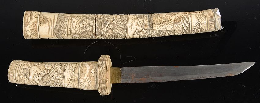 A late 19th/early 20th century Japanese carved bone tanto