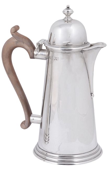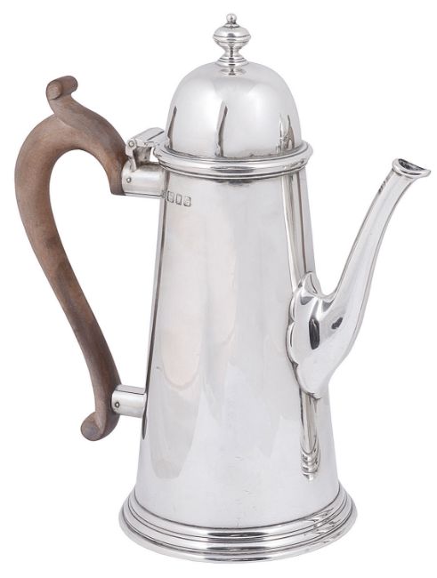 An Elizabeth II George I style silver coffee pot and matching hot water jug