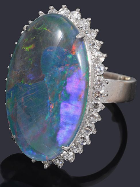 A black opal triplet and diamond cluster ring,